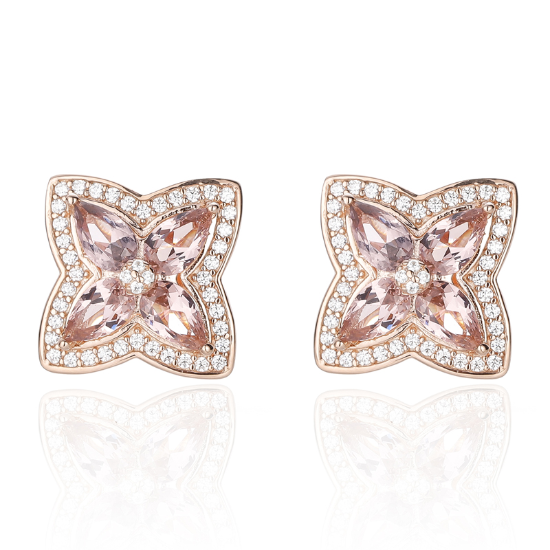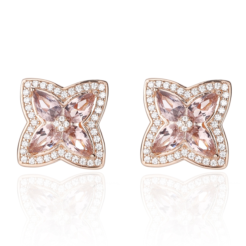4.18Brincos de prata 925 com morganita nano em formato de pera e zircônia cúbica branca redonda com banho de ouro rosa.