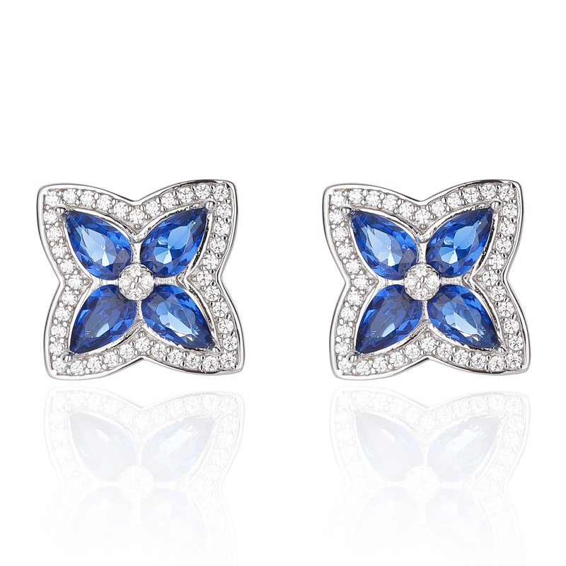 Triângulo Corte criado Tanzanite CZ Ródio sobre o anel de noivado de design de esterlina