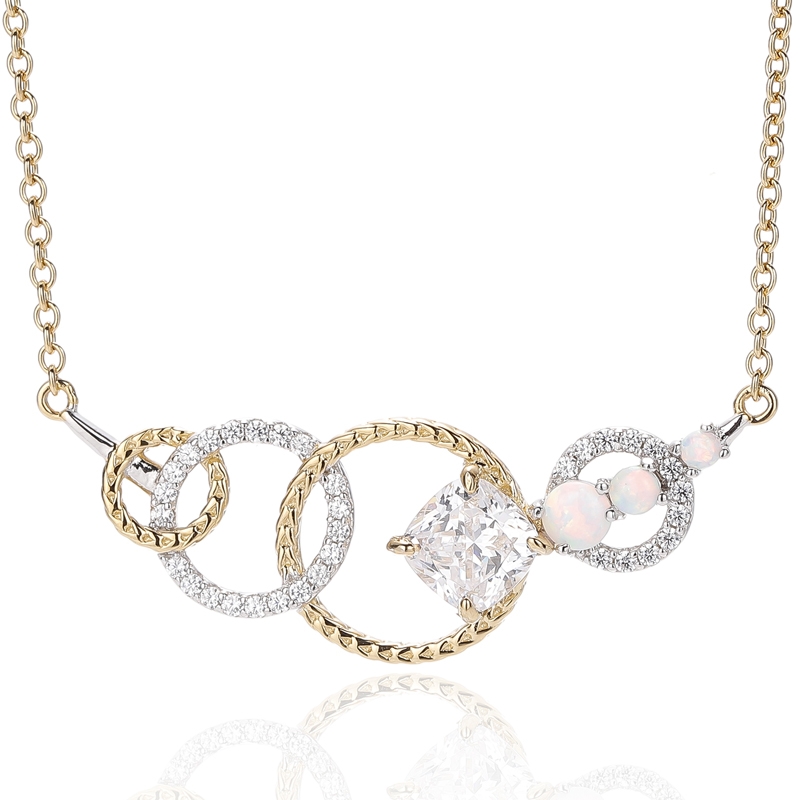 4.66Pingente em prata 925 com opala redonda e zircônia cúbica branca em formato de almofada, com banho em dois tons.