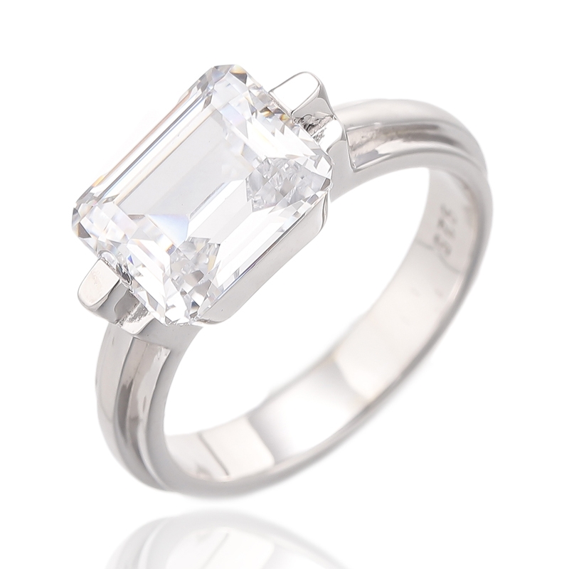 5.40Anel de prata com ródio e zircônia cúbica cinza lapidada em esmeralda