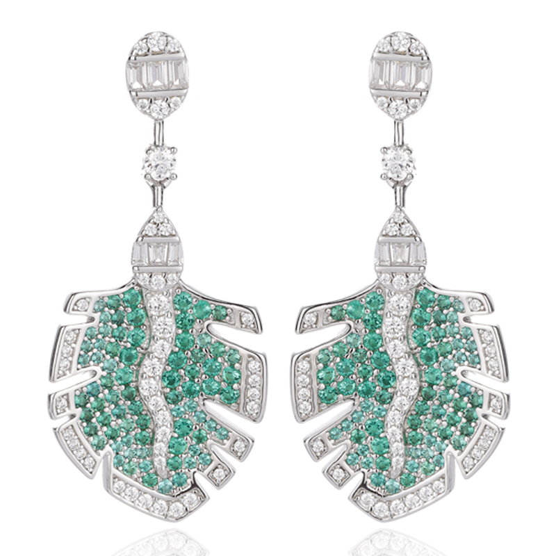 8.95Brinco redondo verde nano e cônico branco com zircônia cúbica banhado a ródio e prata.